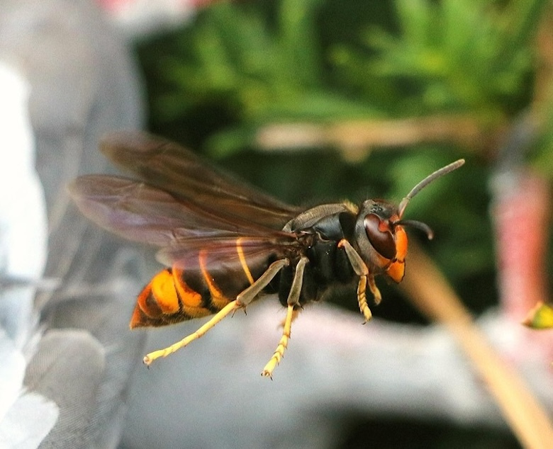 Vespa velutina ist etwas kleiner und schlanker als die heimische Europäische Hornisse (Vespa